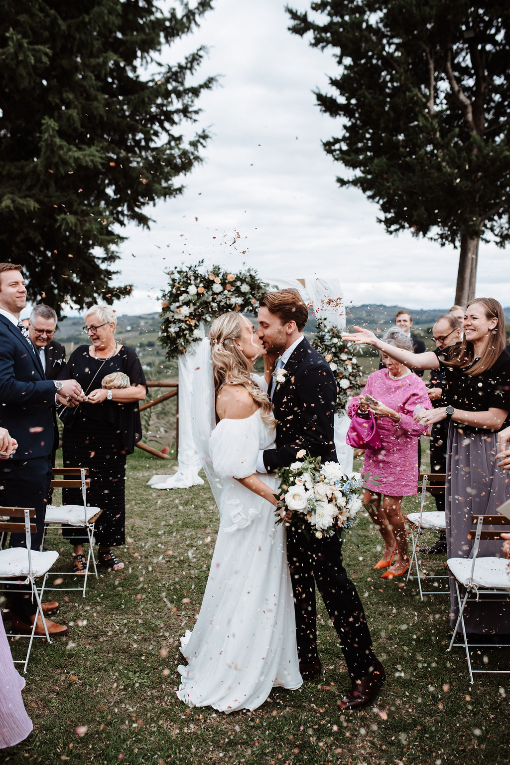 Efter ceremonin så bjöds det på aperitif vid poolen, som därefter efterföljdes av bröllopsmiddagen – genuin toskansk mat, samt såklart viner från vingården. Anna & Christoffer fick sitt magiska drömbröllop med sina närmaste familjer och käraste vänner.